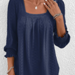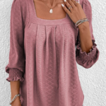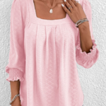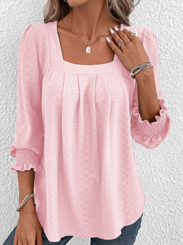 De vierkante halslijn en het eenvoudige patroon voegen een vleugje casual elegantie toe aan je lente- en herfstoutfits.